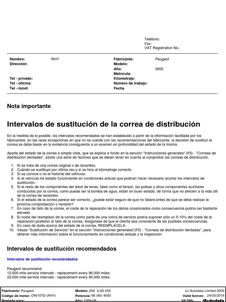 Intervalos de sustitucin de la correa de distribucin