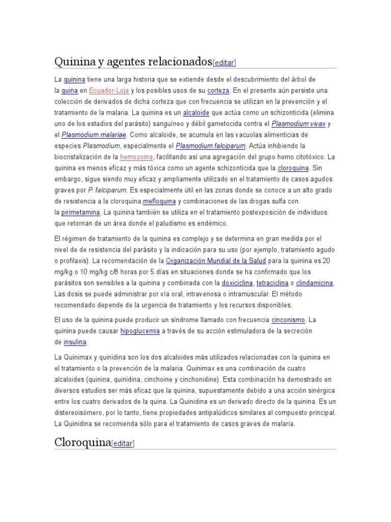 o profilaxis). La recomendacin de la Organizacin Mundial de la Salud para la quinina es 20