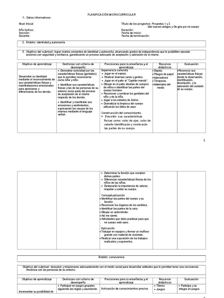 3. Objetivo del subnivel: lograr niveles crecientes de identidad y autonoma, alcanzando grados de independencia que le posibiliten ejecutar