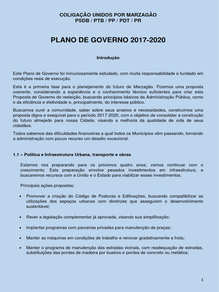 Este Plano de Governo foi minuciosamente estudado, com muita responsabilidade e fundado em