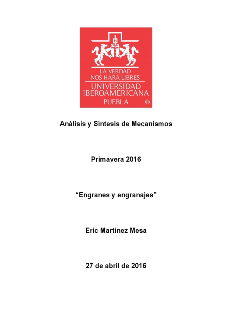 1. Se denomina engranaje al mecanismo utilizado para transmitir potencia de un