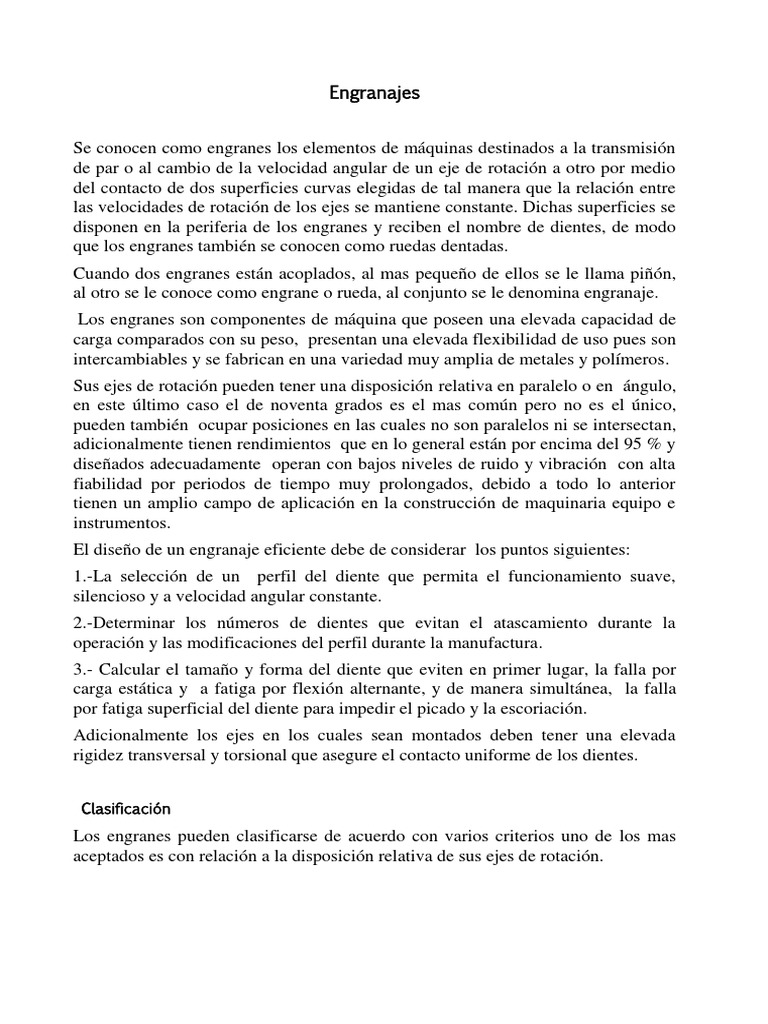 Los engranes son componentes de mquina que poseen una elevada capacidad de