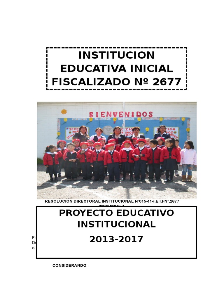 El Proyecto Educativo Institucional de la Institucin educativa Inicial Fiscalizado No