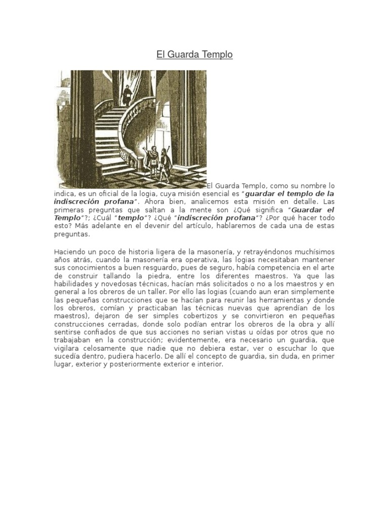 los profanos, pero ms an cada uno de los oficiales en logia es un Guarda Templo,