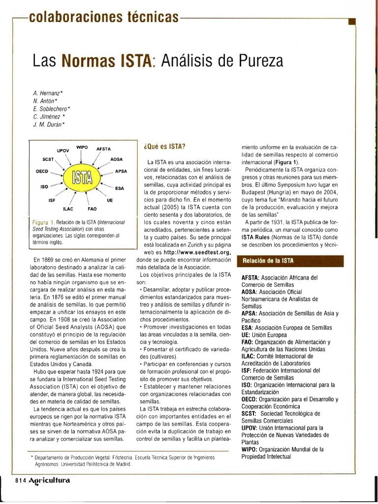 mientras que Norteamrica y otros pases se sirven de la normativa AOSA para analizar y comercializar sus semillas.