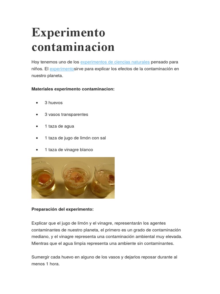 nios. El experimentosirve para explicar los efectos de la contaminacin en