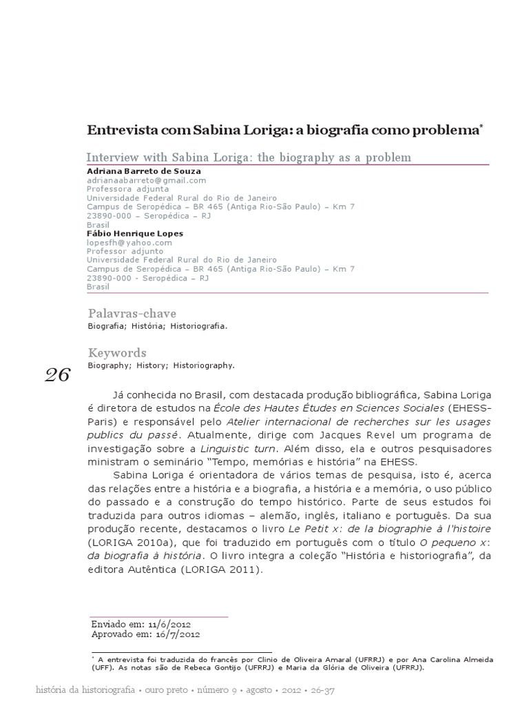 ________. Entrevista com Sabina Loriga: a histria biogrfica, realizada por