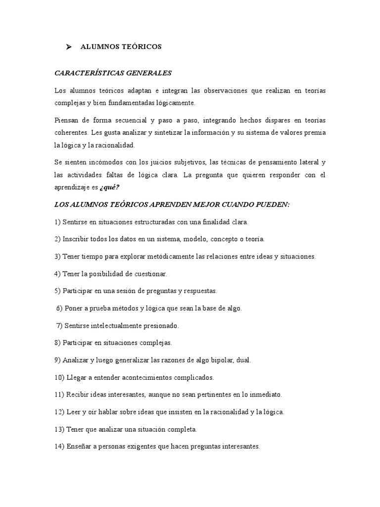 LOS ALUMNOS TERICOS APRENDEN MEJOR CUANDO PUEDEN: