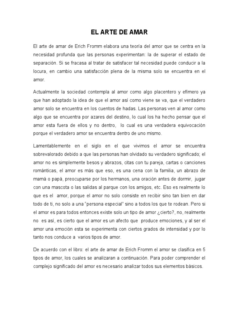 El arte de amar de Erich Fromm elabora una teora del amor que se centra en la