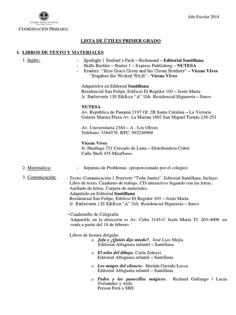 a. Todos los LIBROS, CUADERNOS y UTILES ESCOLARES solicitados deben tener nombres y