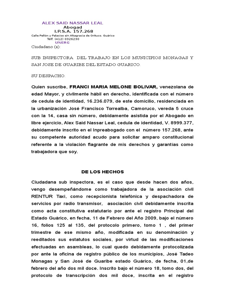 derecho, y sabiendo que se me vence el lapso para ampararme,