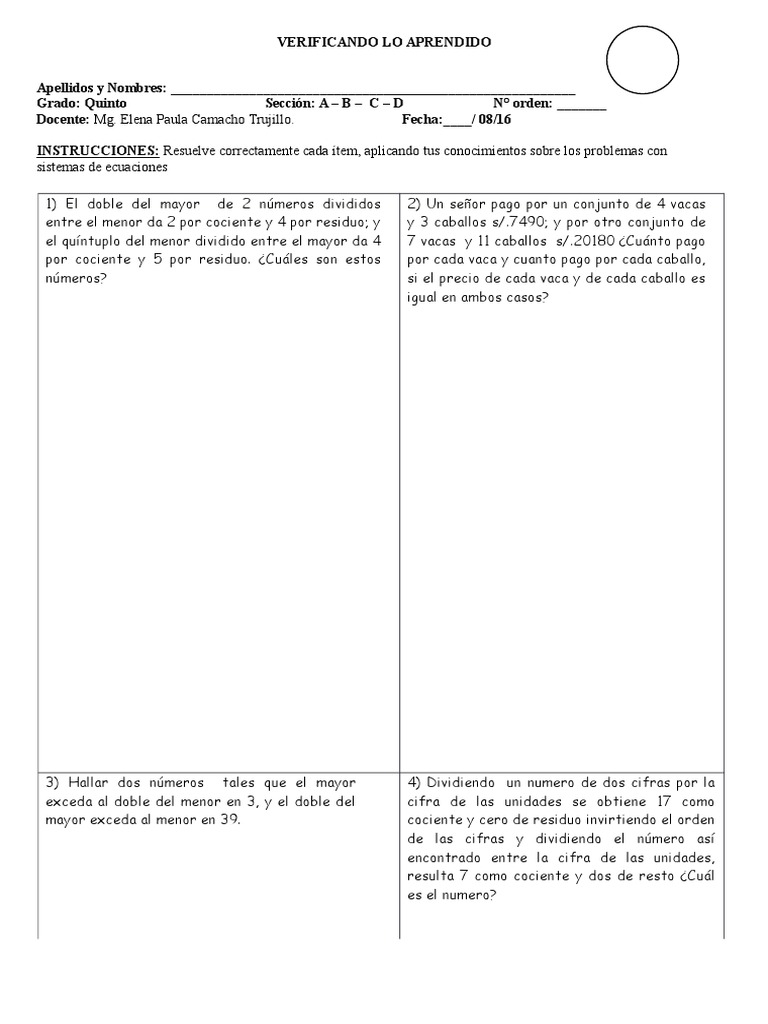 INSTRUCCIONES: Resuelve correctamente cada tem, aplicando tus conocimientos sobre los problemas con