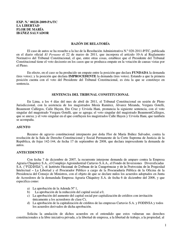 Sentencia del TC sobre amparo en La Libertad