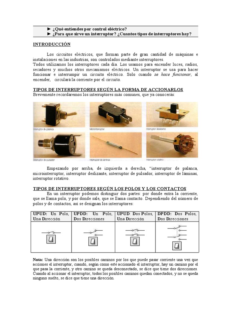 Brevemente recordaremos los interruptores ms comunes, que ya conocers: