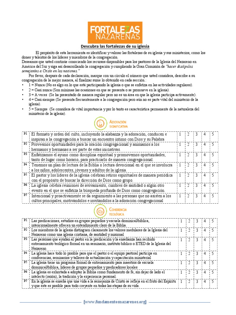 El propsito de esta herramienta es identificar y valorar las fortalezas de su iglesia y sus ministerios, como los