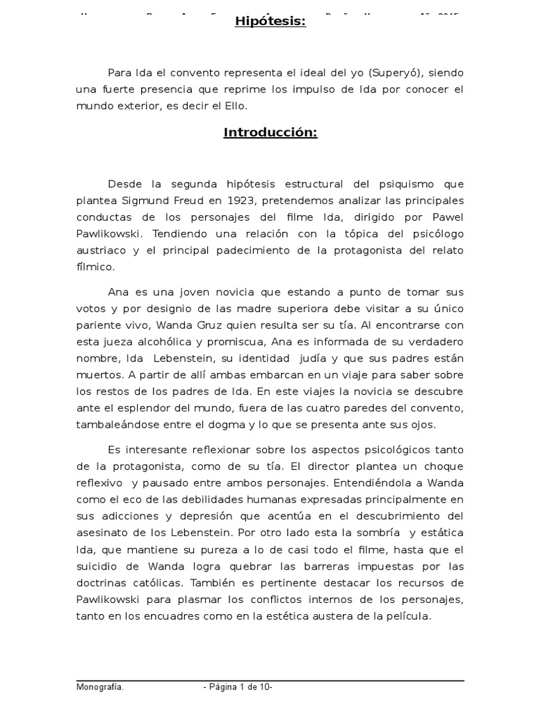 momentos el Yo mediador de Ida se hace presente lidiando con la