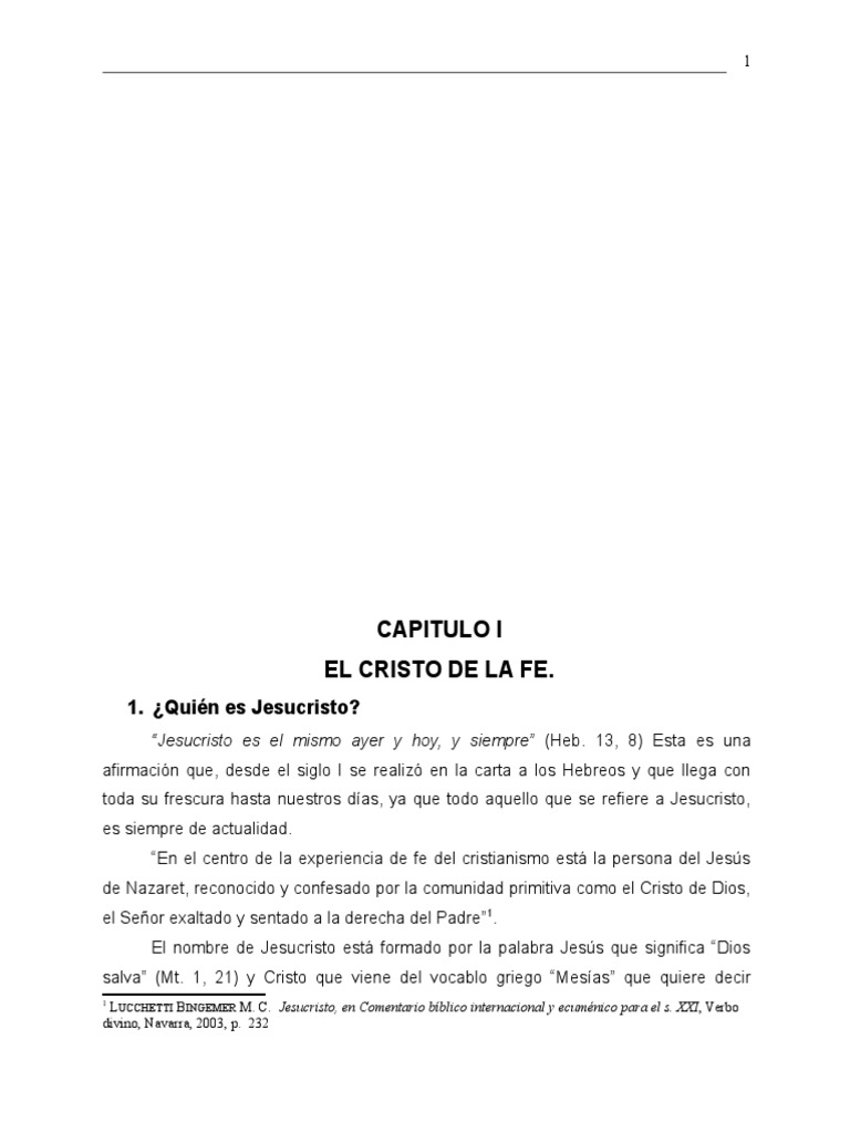 (Cfr. A. CALVO- A. RUIZ. Para leer una cristologa elemental, Verbo divino, Navarra, 200210 p. 26)