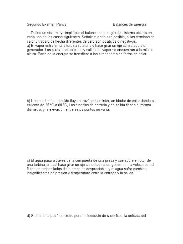 1. Defina un sistema y simplifique el balance de energa del sistema abierto en