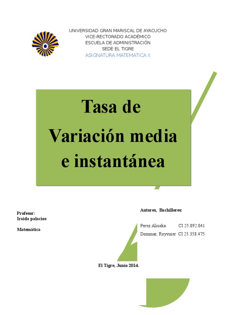 de Tasa de variacion, Tasa de variacin media y Tasa de variacin instantnea, aprenders a