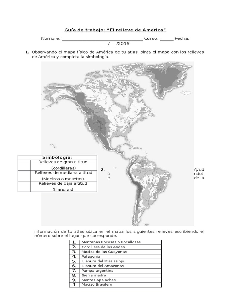 Gua de trabajo: El relieve de Amrica
