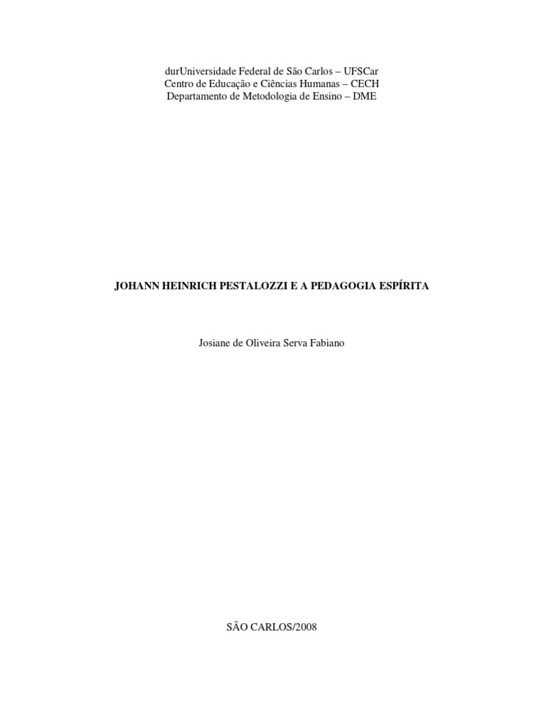 Pedagogia proposta por Pestalozzi a Pedagogia Esprita e como tais propostas contribuem