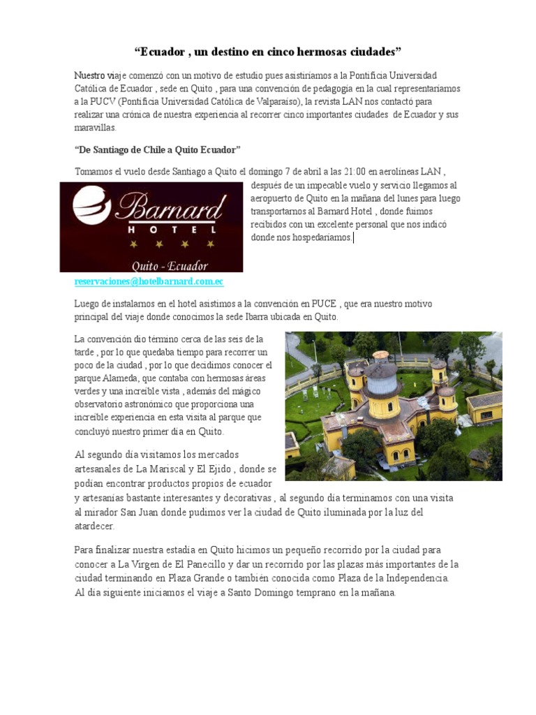 realizar una crnica de nuestra experiencia al recorrer cinco importantes ciudades de Ecuador y sus