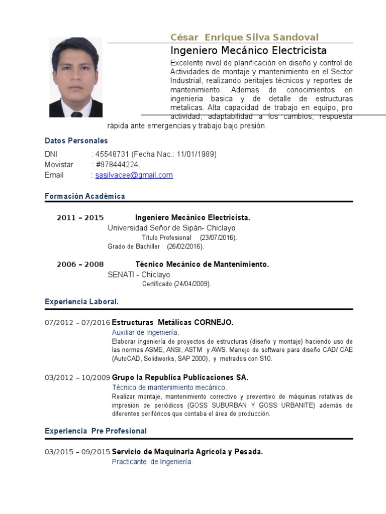 (AutoCAD, Solidworks, SAP 2000), y metrados con S10.