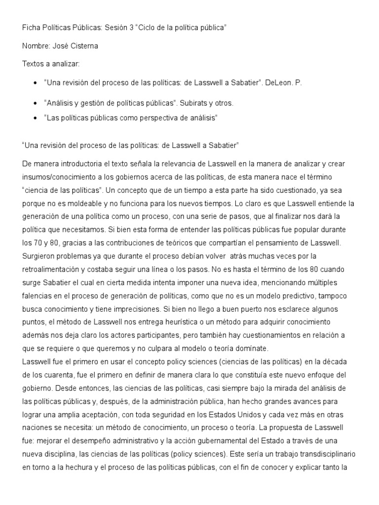 Ficha Polticas Pblicas: Sesin 3 Ciclo de la poltica pblica