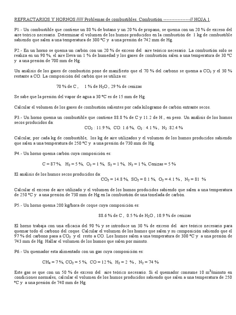REFRACTARIOS Y HORNOS ///// Problemas de combustibles. Combustin -----------------// HOJA 1.
