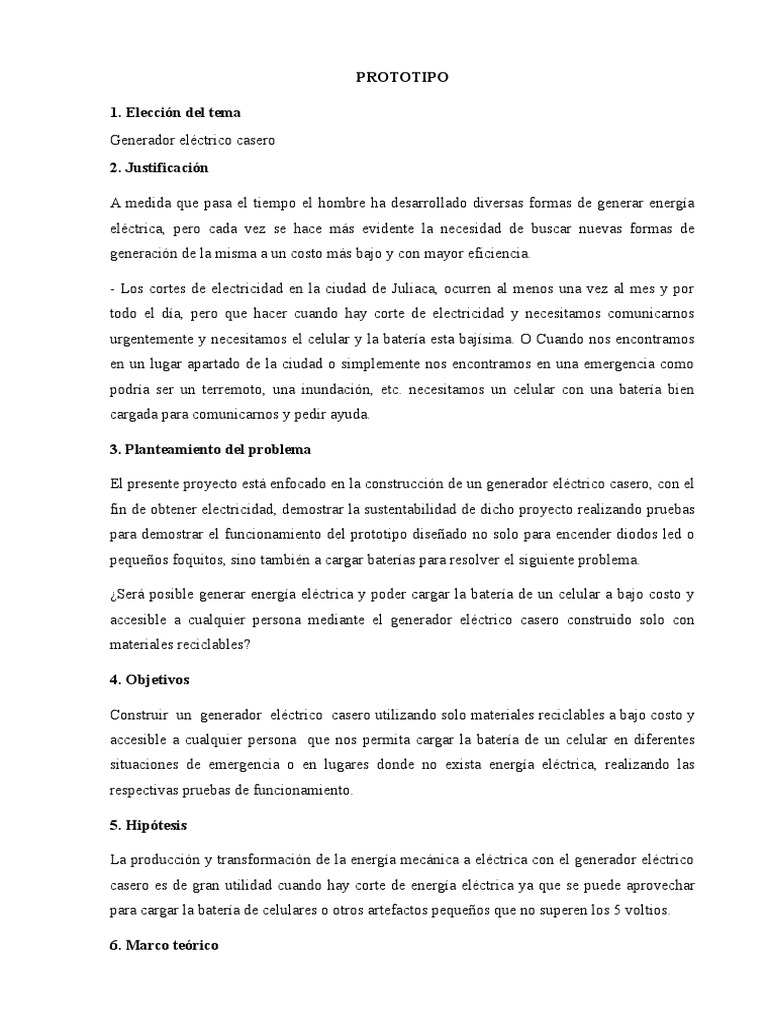 El presente proyecto est enfocado en la construccin de un generador elctrico casero, con el