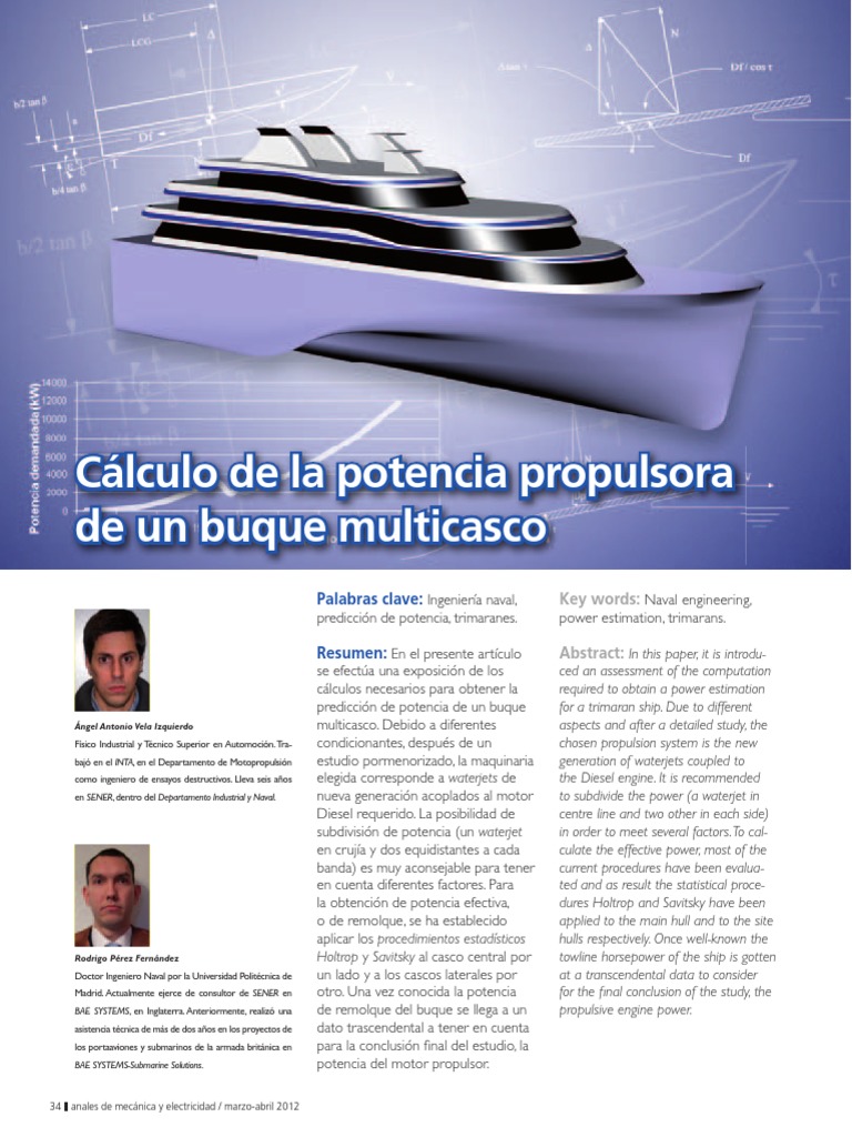 predicción de potencia, trimaranes. power estimation, trimarans.