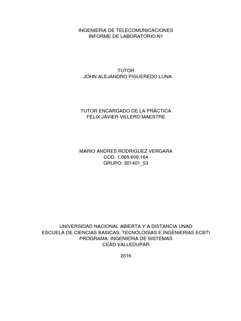 UNIVERSIDAD NACIONAL ABIERTA Y A DISTANCIA UNAD