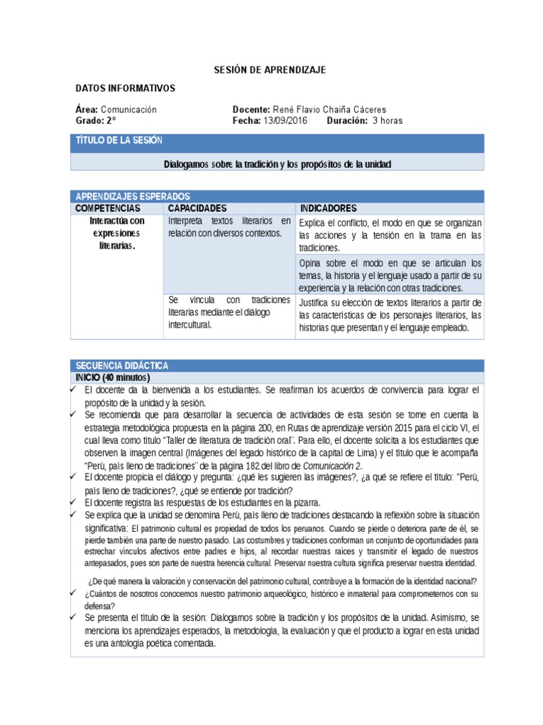 Se presenta el ttulo de la sesin: Dialogamos sobre la tradicin y los propsitos de la unidad. Asimismo, se