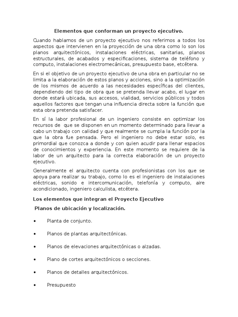 Cuando hablamos de un proyecto ejecutivo nos referimos a todos los
