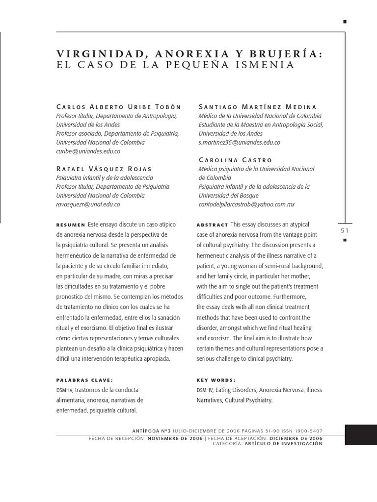 virginidad, anorexia y brujera: el caso de la pequea ismenia | carlos alberto uribe, et l.