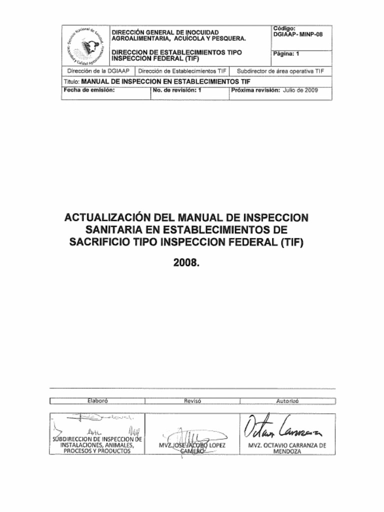 Ful: MANUAL DE INSPECCION EN ESTABLECIMIENTOS TIF