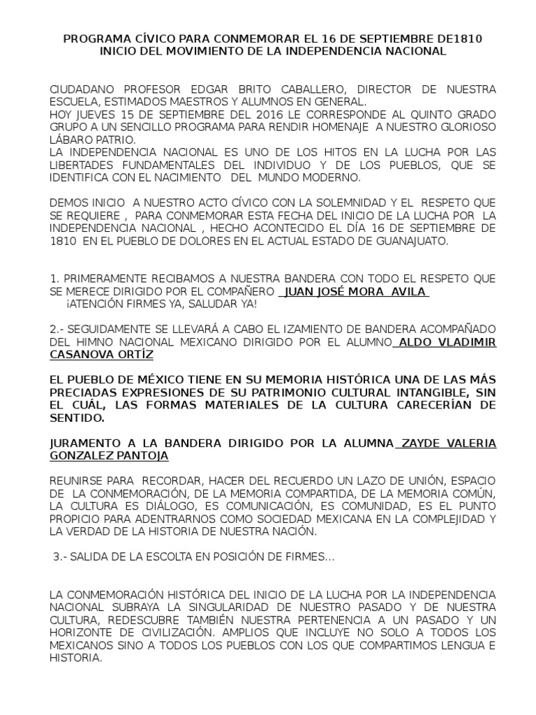 PROGRAMA CVICO PARA CONMEMORAR EL 16 DE SEPTIEMBRE DE1810