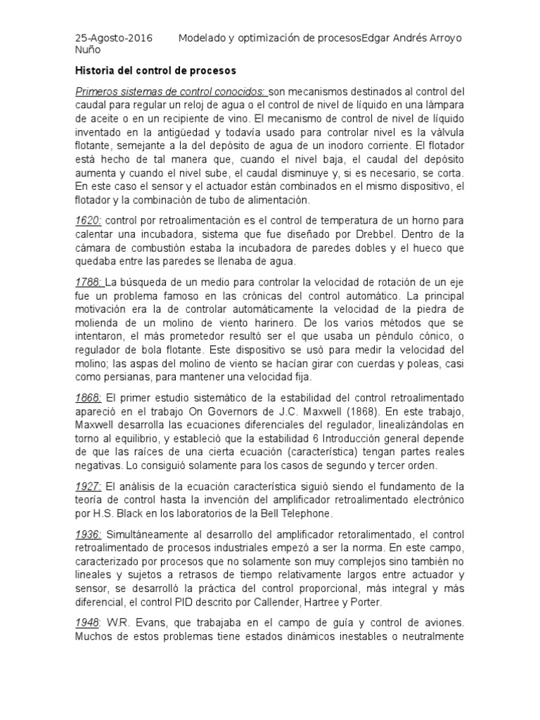 Historia del control de procesos