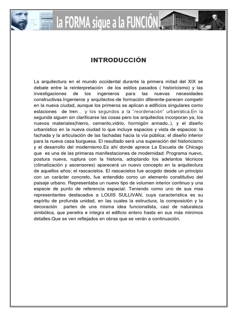 y el desarrollo del modernismo.Es ah donde aprece La Escuela de Chicago