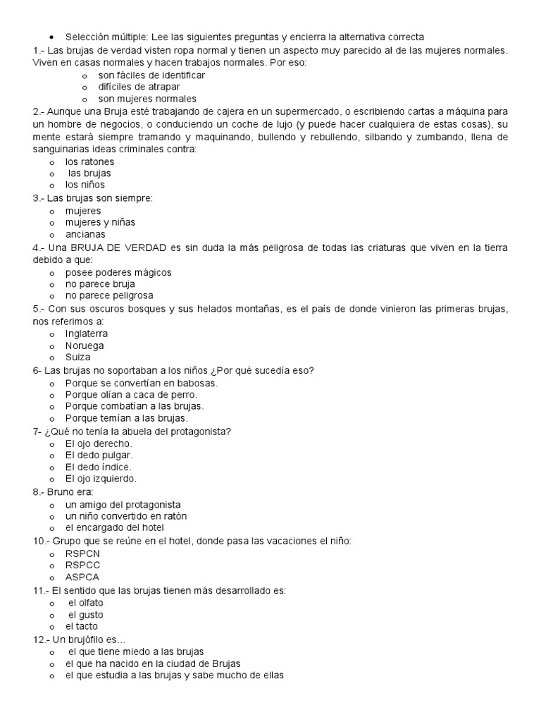 Seleccin mltiple: Lee las siguientes preguntas y encierra la alternativa correcta
