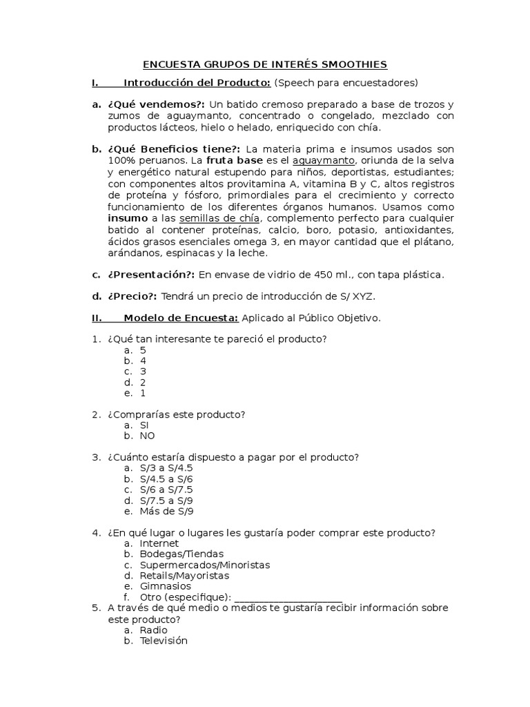 ENCUESTA GRUPOS DE INTERS SMOOTHIES