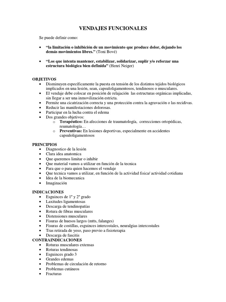 El vendaje debe colocar en posicin de relajacin las estructuras orgnicas implicadas,