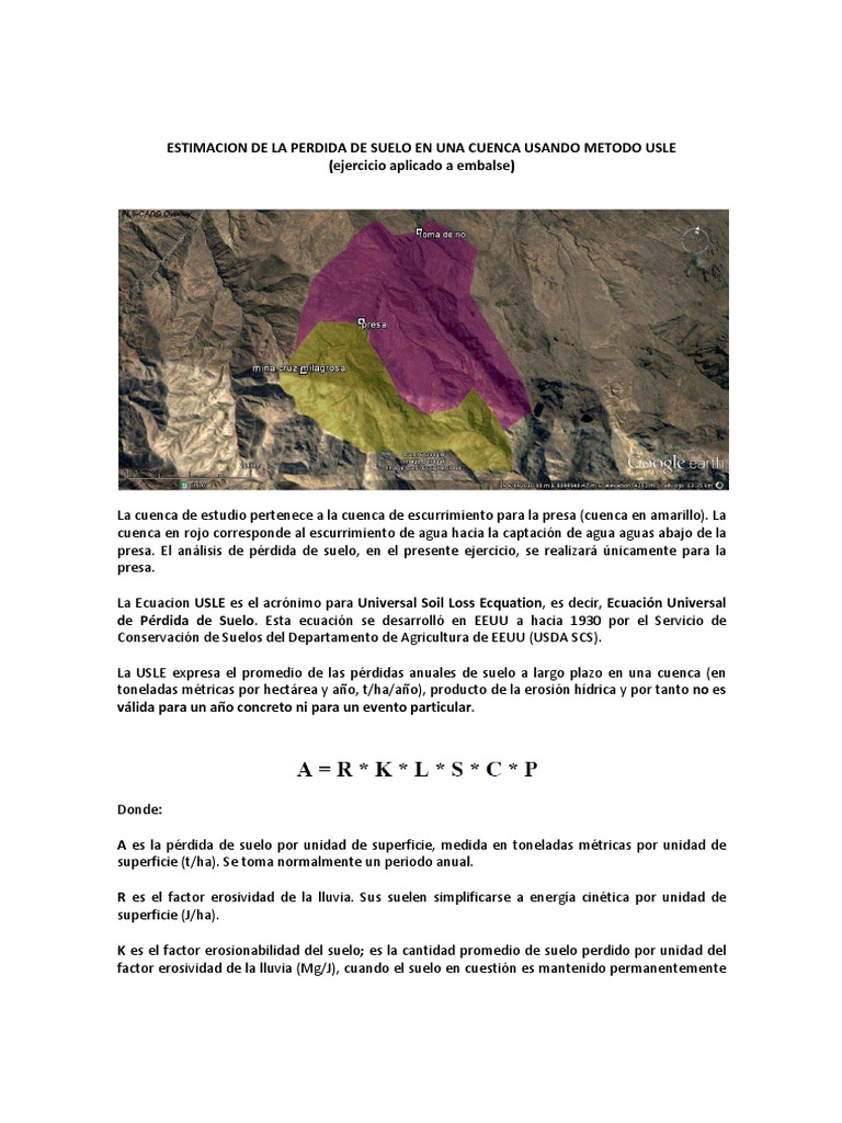 La Ecuacion USLE es el acrnimo para Universal Soil Loss Ecquation, es decir, Ecuacin Universal