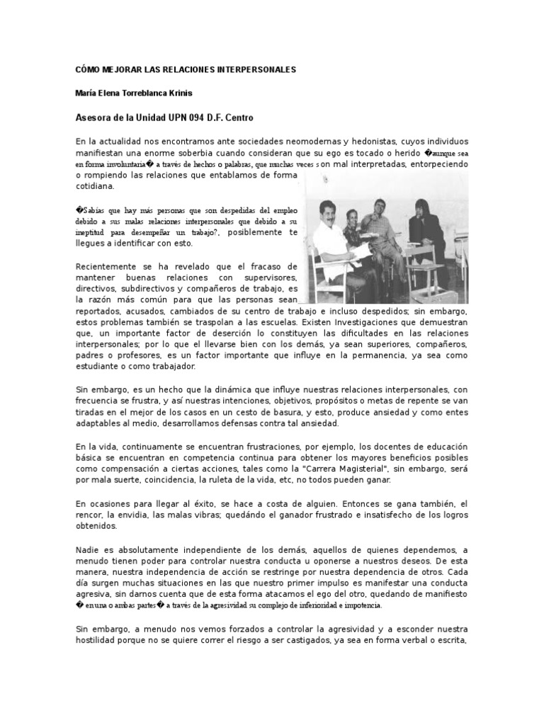 CMO MEJORAR LAS RELACIONES INTERPERSONALES