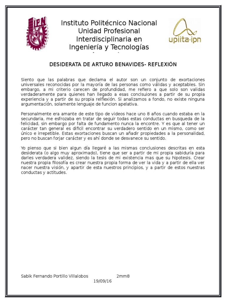 DESIDERATA DE ARTURO BENAVIDES- REFLEXIN