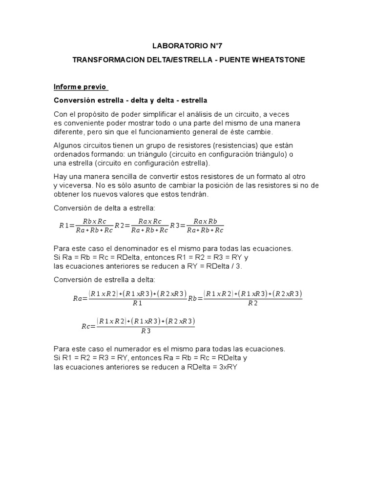 TRANSFORMACION DELTA/ESTRELLA - PUENTE WHEATSTONE