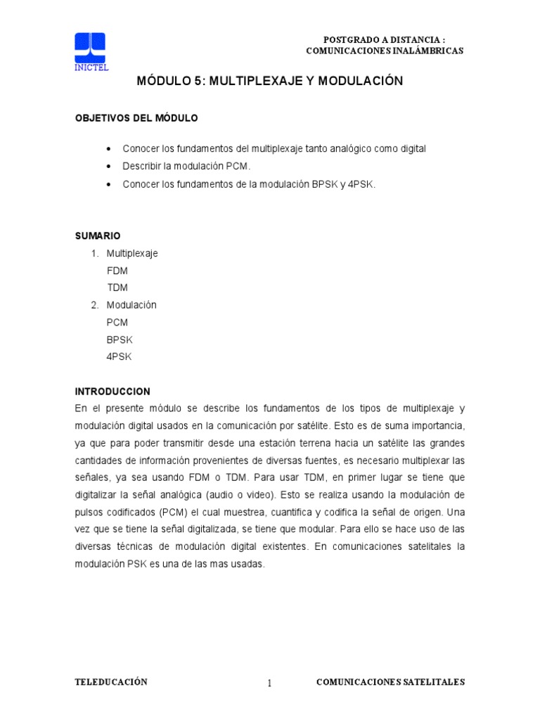 modulacin digital usados en la comunicacin por satlite. Esto es de suma importancia,