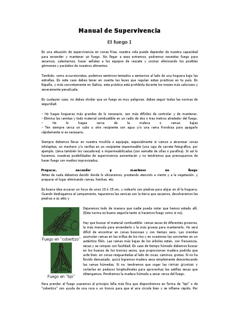 secarnos, calentarnos, hacer seales a los equipos de rescate y cocinar eliminando los posibles