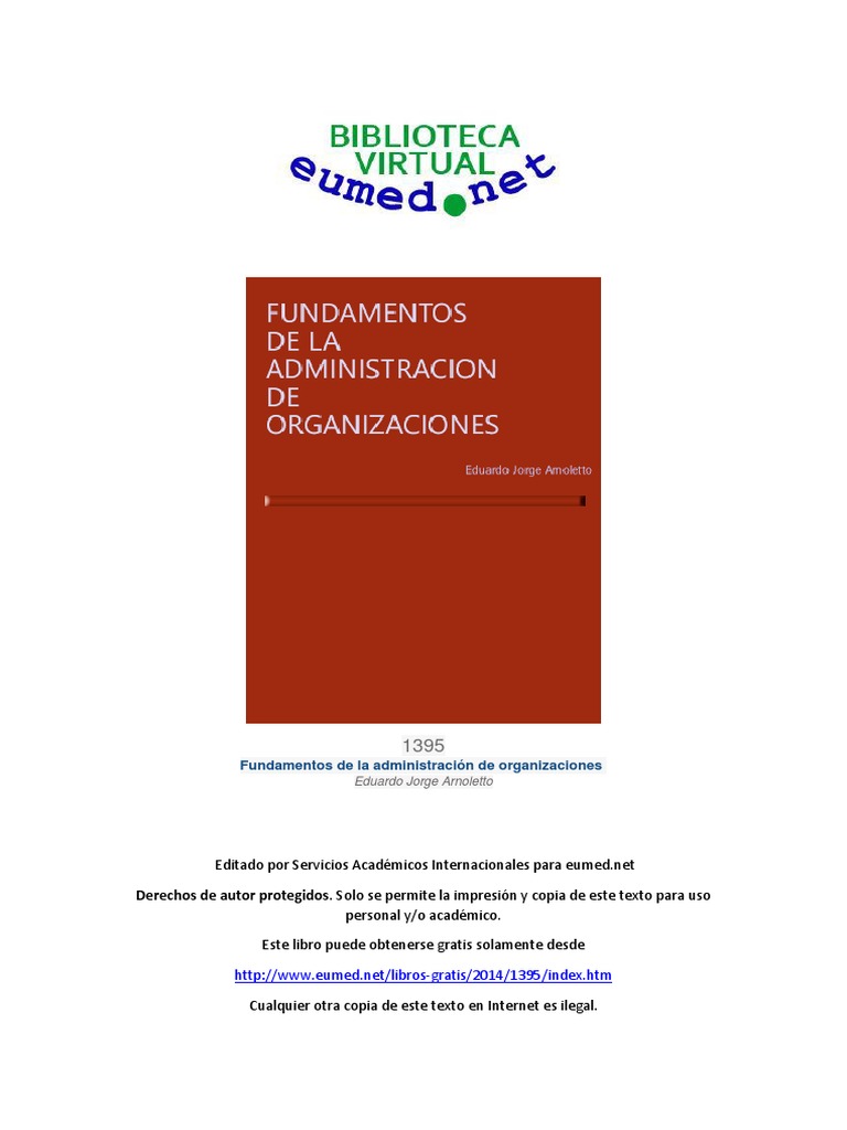 Este libro nace con la intencin de proveer una formacin panoramica inicial sobre el vasto campo de la administracin de organizaciones, desde un enfoque cientfico-tcnico generalista y con una