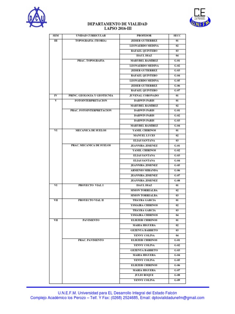 Complejo Acadmico los Perozo Telf. Y Fax: (0268) 2524685, Email: dptovialidadunefm@gmail.com